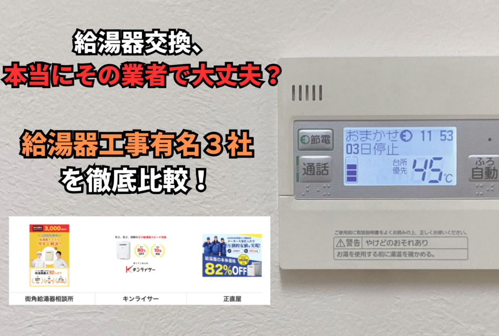 なお、1円でも安く給湯器交換・修理したい方は必ず2〜3社に相見積もりを取ってください。