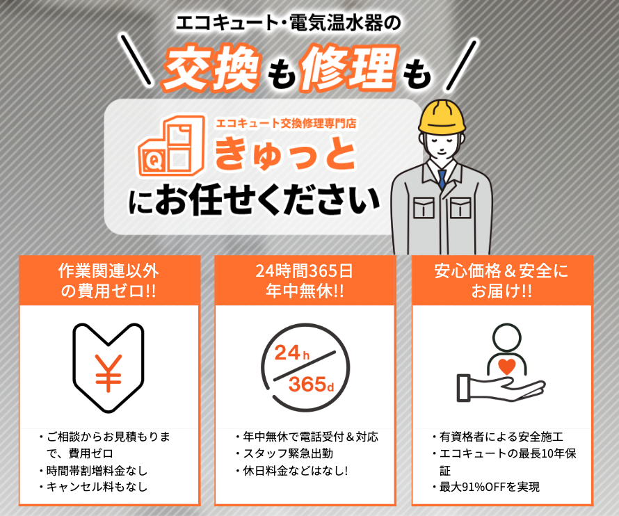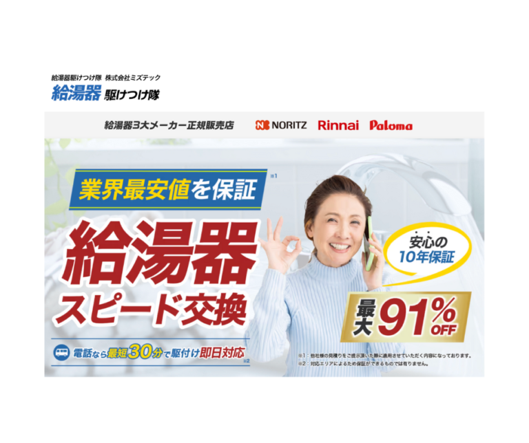 給湯器・エコキュートどちらも対応可能で、訪問スピード・商品割引・保証とどれをとってもピカイチの優良おすすめ業者になります。